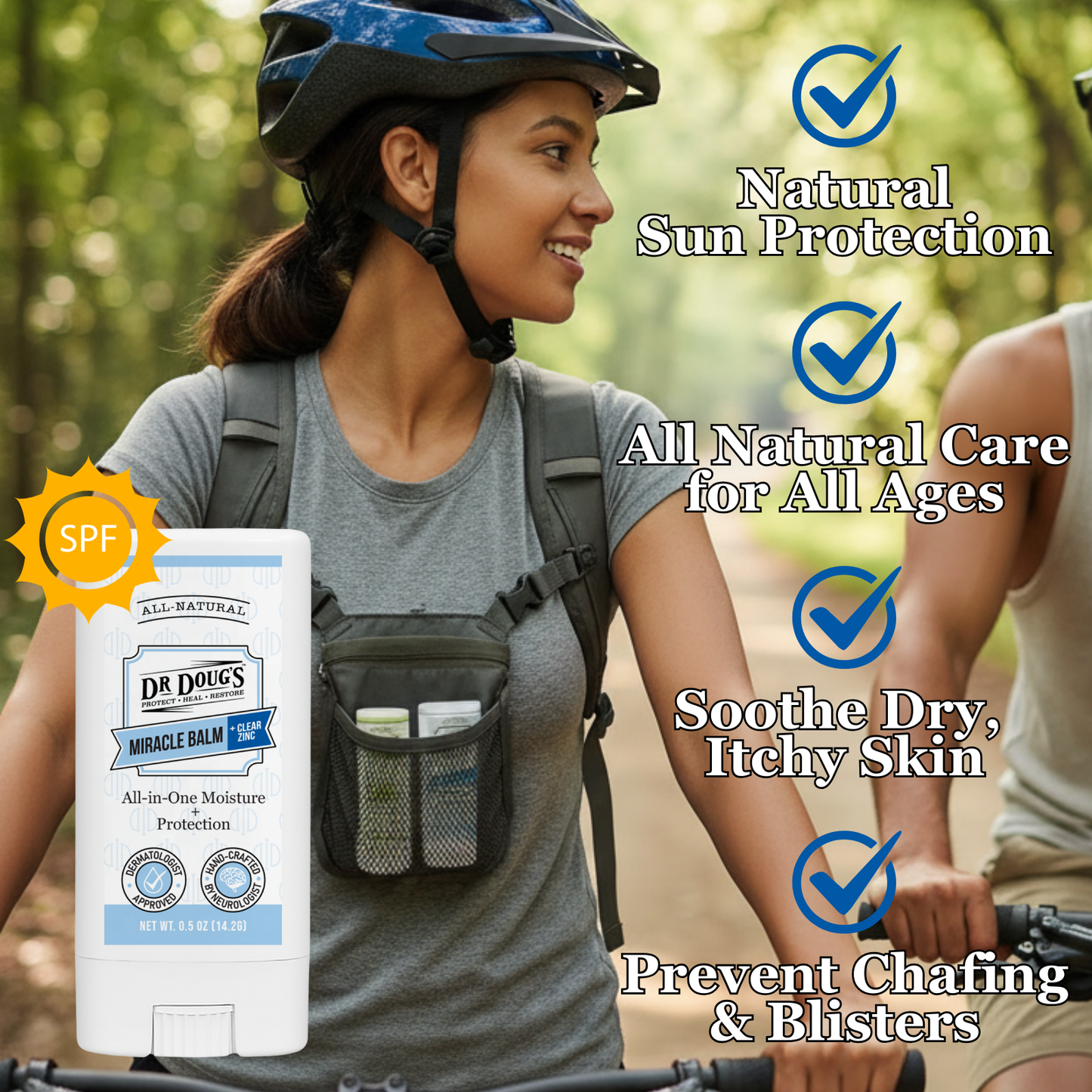 Zinc Oxide i Mineral barrier support for skin exposed to sun, wind, sweat, and gear.