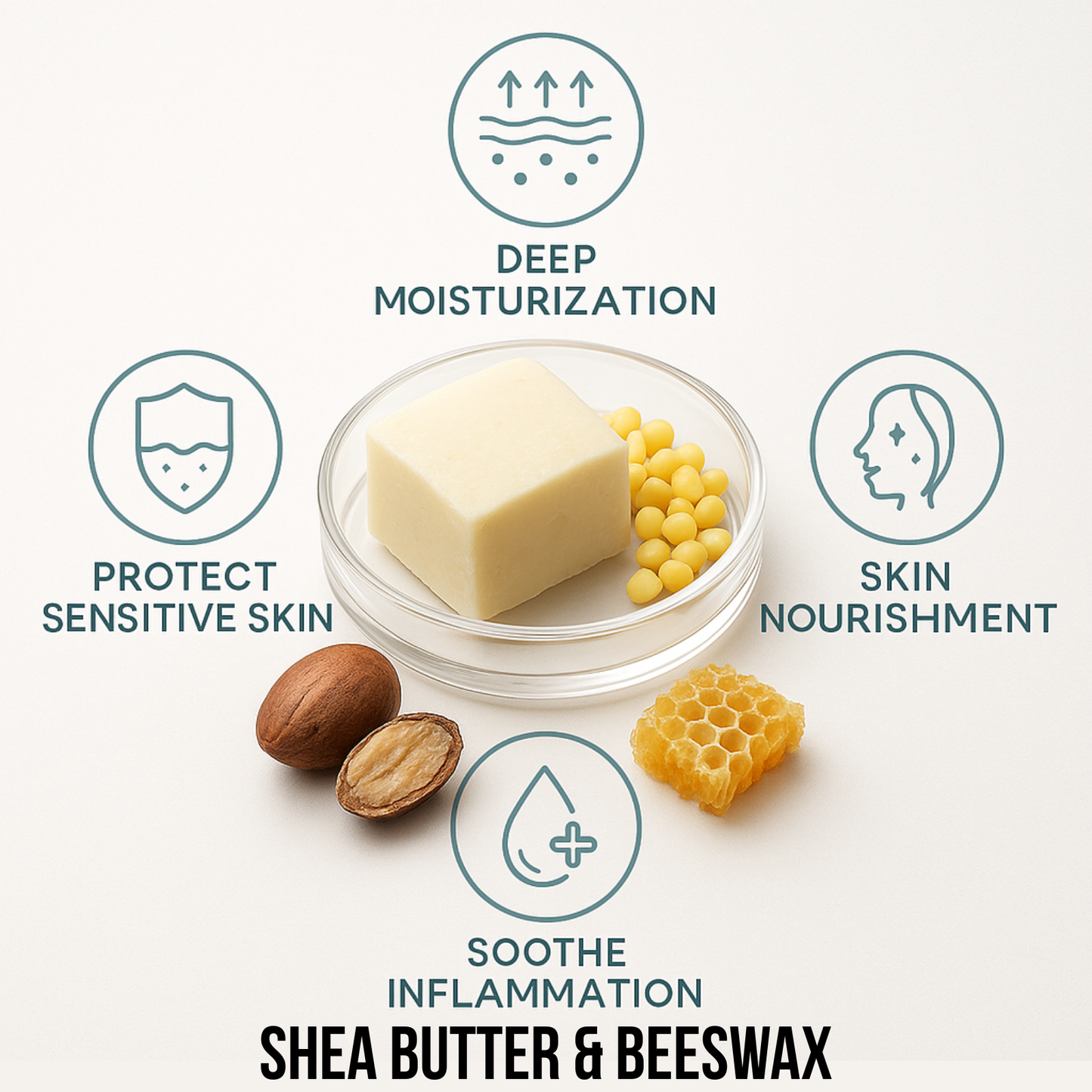 Organic Olive Oil (Olea Europaea Fruit Oil), Organic Coconut Oil (Cocos Nucifera Oil), Beeswax (Cera Alba), Organic Shea Butter (Butyrospermum Parkii Butter), Magnesium Chloride, Organic Peppermint Essential Oil (Mentha Piperita Oil), Lavender Essential Oil (Lavandula Angustifolia Oil), Vitamin E (Tocopherol).