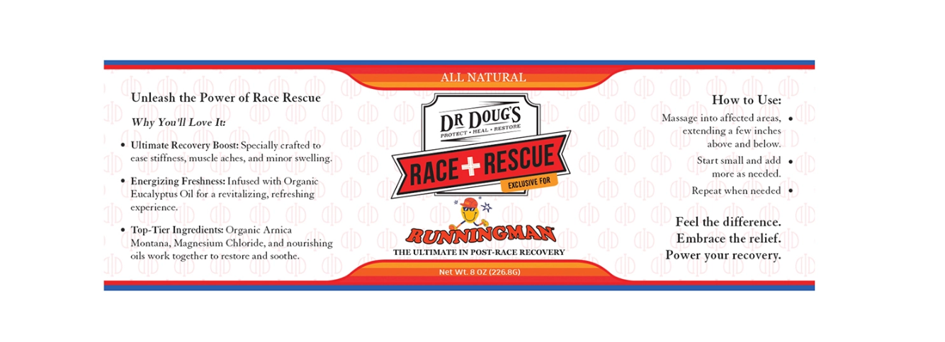 Hey runners! Get ready to take your recovery to the next level with Race Rescue, our exclusive, limited-edition gem designed for the Runningman Festival. We’re thrilled to bring back by popular demand, Dr. Doug’s Recovery Balm + Organic Eucalyptus Oil—crafted to help you bounce back faster and feel fantastic.