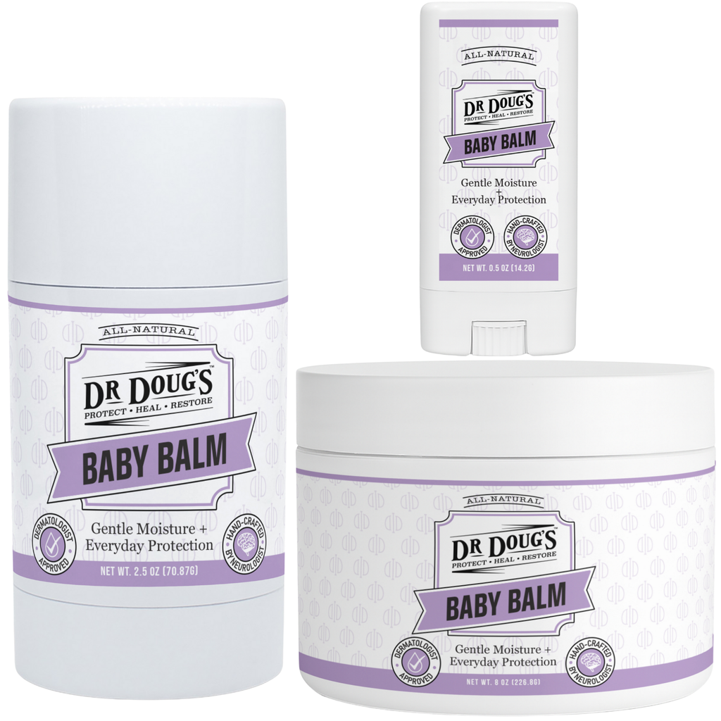Pamper your little one’s skin with our gentle Baby Balm, lovingly crafted from nature’s finest ingredients. Dr. Doug’s Baby Balm combines organic beeswax, extra-virgin coconut and olive oils, Vitamin E, myrrh, and lavender and tea tree oils to nourish and protect against diaper rash, cradle cap, and eczema.